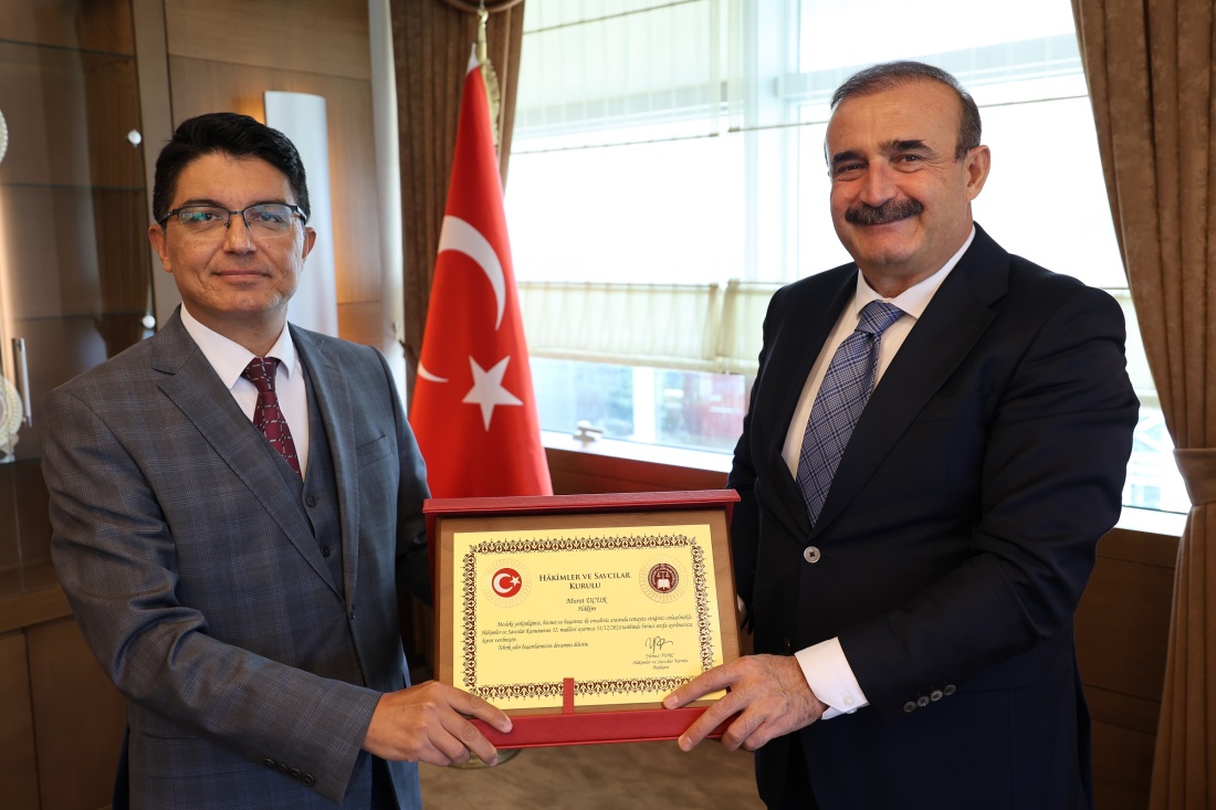 Hâkimler ve Savcılar Kurulunca birinci sınıfa ayrılmasına karar verilen Raportör Hâkimlerimizden Sayın Murat Uçur'a Mahkememiz Başkanı Rıdvan Güleç tarafından, Uyuşmazlık Mahkemesi toplantı salonunda düzenlenen törenle plaket takdim edildi.
